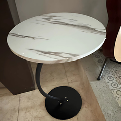 Esta mesa auxiliar portátil para espacios pequeños es perfecta para darle un toque moderno a tu hogar. Con una base de metal y una tapa de madera con acabado de mármol, esta mesa es elegante y funcional. Su forma redonda y su altura de 60 cm la hacen ideal para cualquier ambiente.